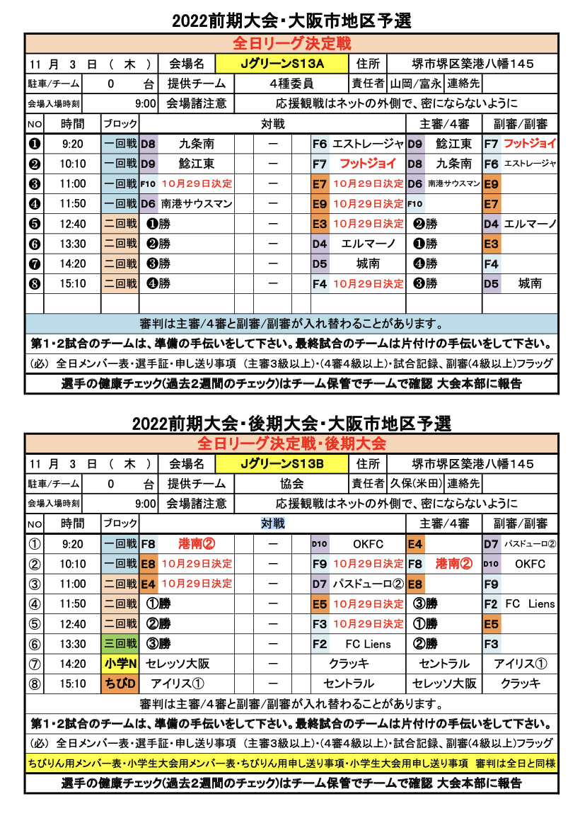22年度 U 12リーグ第46回全日本少年サッカー大会 大阪市地区予選 大阪 10 22 23結果 地区代表2枠決定 次節10 29 ジュニアサッカーnews